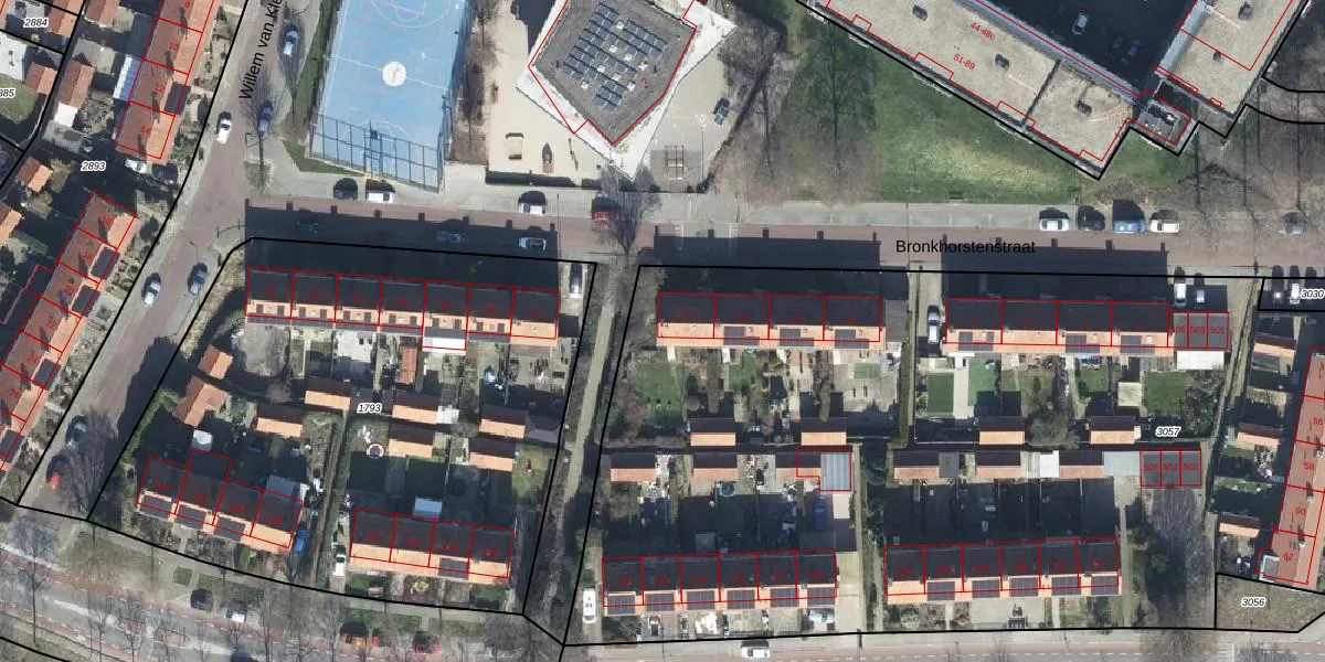 Het perceel waarop Bronkhorstenstraat 15 staat heeft een oppervlakte van 5995 m². Dit is een zeer groot perceel. De perceeloppervlakte wordt geregistreerd door het Kadaster. Gedetailleerde informatie over de maten van dit perceel kunt u vinden in het rapport Kadastrale kaart met maatvoering van Bronkhorstenstraat 15.