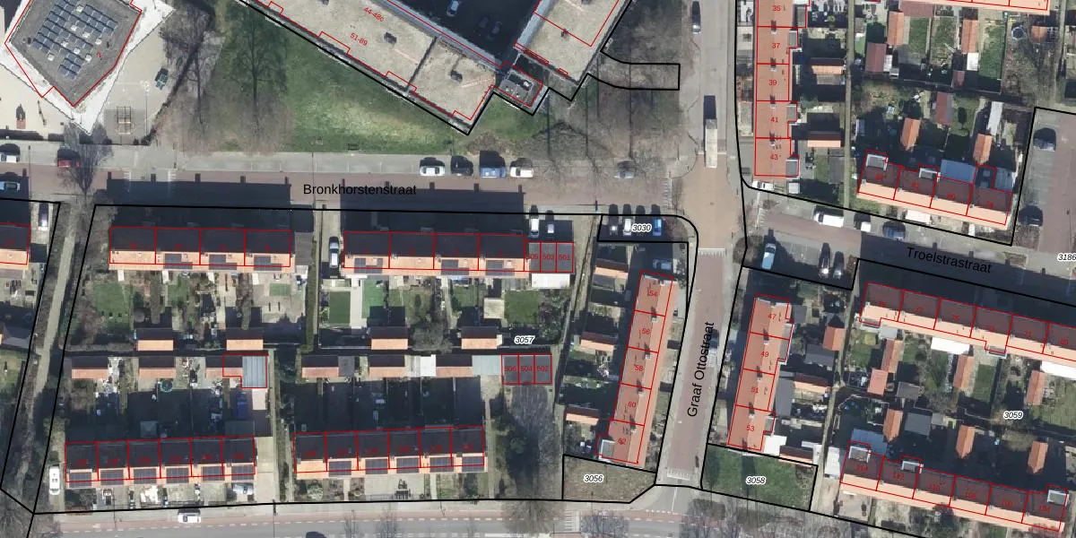 Het perceel waarop Bronkhorstenstraat 505 staat heeft een oppervlakte van 5995 m². Dit is een zeer groot perceel. De perceeloppervlakte wordt geregistreerd door het Kadaster. Gedetailleerde informatie over de maten van dit perceel kunt u vinden in het rapport Kadastrale kaart met maatvoering van Bronkhorstenstraat 505.