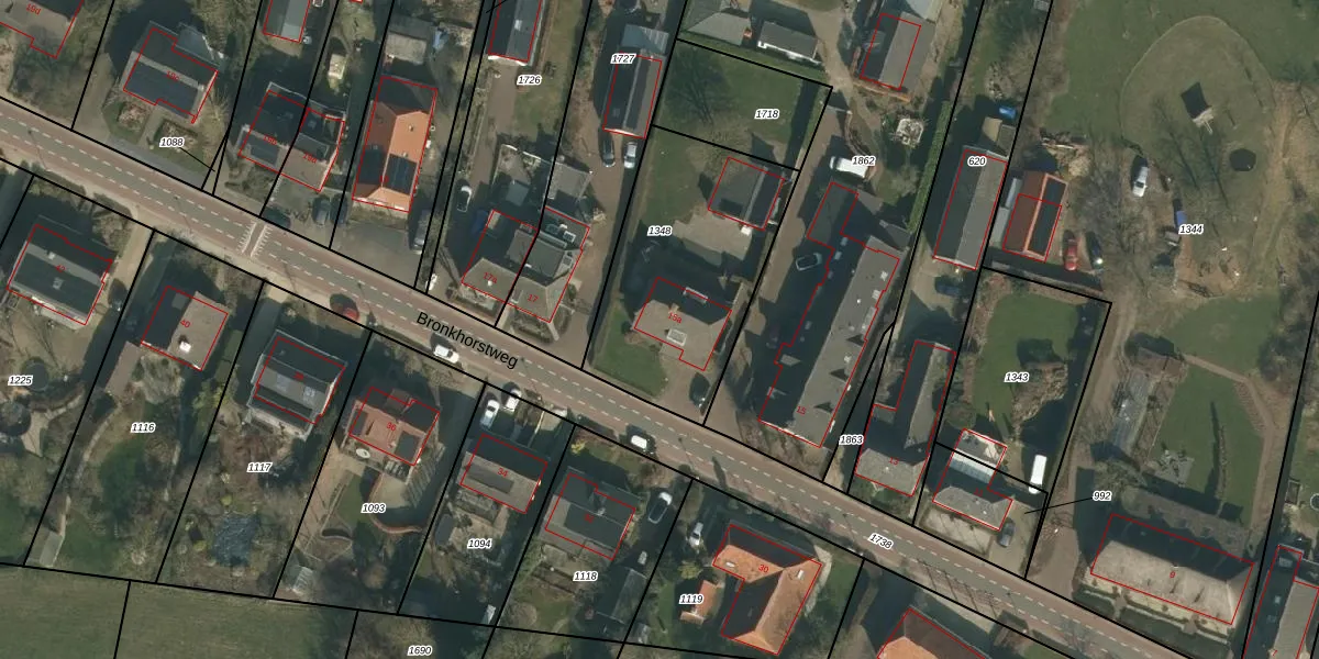 Het perceel waarop Bronkhorstweg 15-a staat heeft een oppervlakte van 865 m². Dit is een groot perceel. De perceeloppervlakte wordt geregistreerd door het Kadaster. Gedetailleerde informatie over de maten van dit perceel kunt u vinden in het rapport Kadastrale kaart met maatvoering van Bronkhorstweg 15-a.