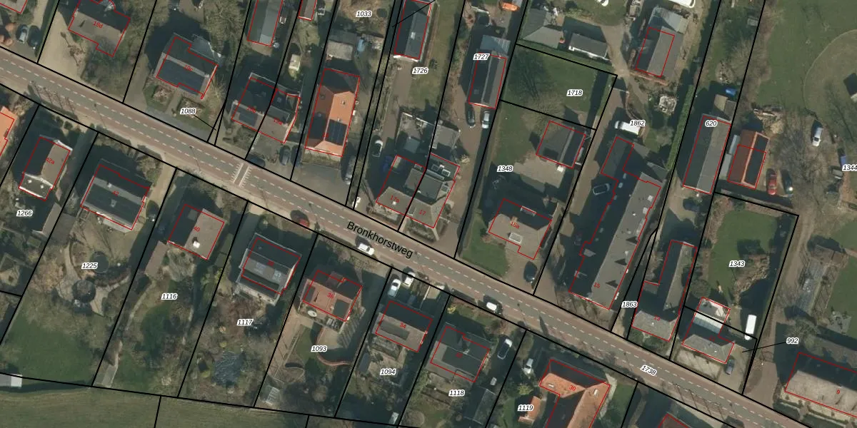Het perceel waarop Bronkhorstweg 17 staat heeft een oppervlakte van 1208 m². Dit is een zeer groot perceel. De perceeloppervlakte wordt geregistreerd door het Kadaster. Gedetailleerde informatie over de maten van dit perceel kunt u vinden in het rapport Kadastrale kaart met maatvoering van Bronkhorstweg 17.