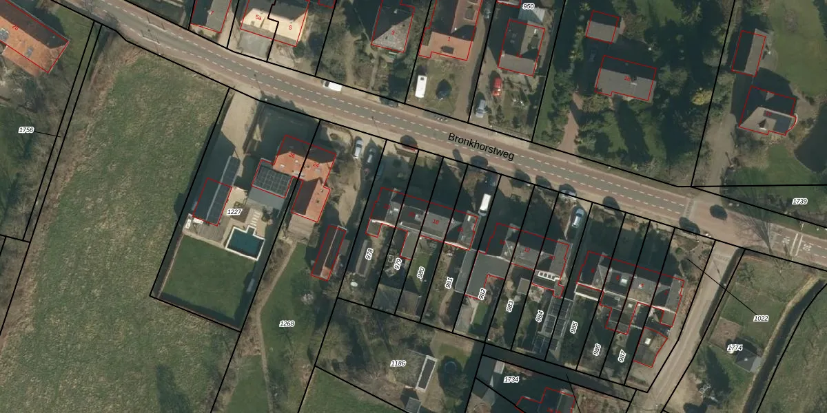 Bronkhorstweg 20 is gelegen op kadastraal perceel GVE00H979. Deze kadastrale aanduiding is uniek en wordt gebruikt door het Kadaster om eigendomsrechten en andere zakelijke rechten vast te leggen. Het perceel maakt onderdeel uit van de kadastrale gemeente Grave.