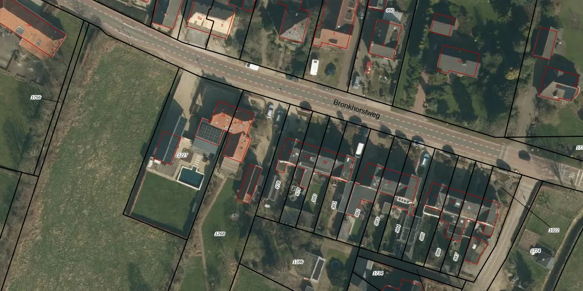 Bronkhorstweg 22 is gelegen op kadastraal perceel GVE00H978. Deze kadastrale aanduiding is uniek en wordt gebruikt door het Kadaster om eigendomsrechten en andere zakelijke rechten vast te leggen. Het perceel maakt onderdeel uit van de kadastrale gemeente Grave.