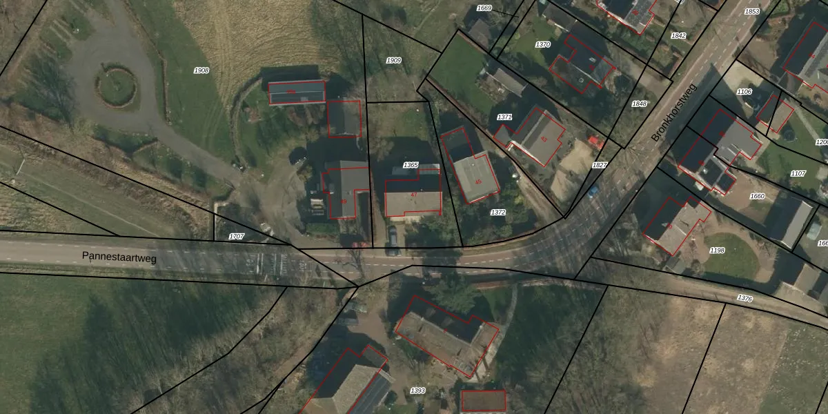 Bronkhorstweg 47 is gelegen op kadastraal perceel GVE00H1365. Deze kadastrale aanduiding is uniek en wordt gebruikt door het Kadaster om eigendomsrechten en andere zakelijke rechten vast te leggen. Het perceel maakt onderdeel uit van de kadastrale gemeente Grave.