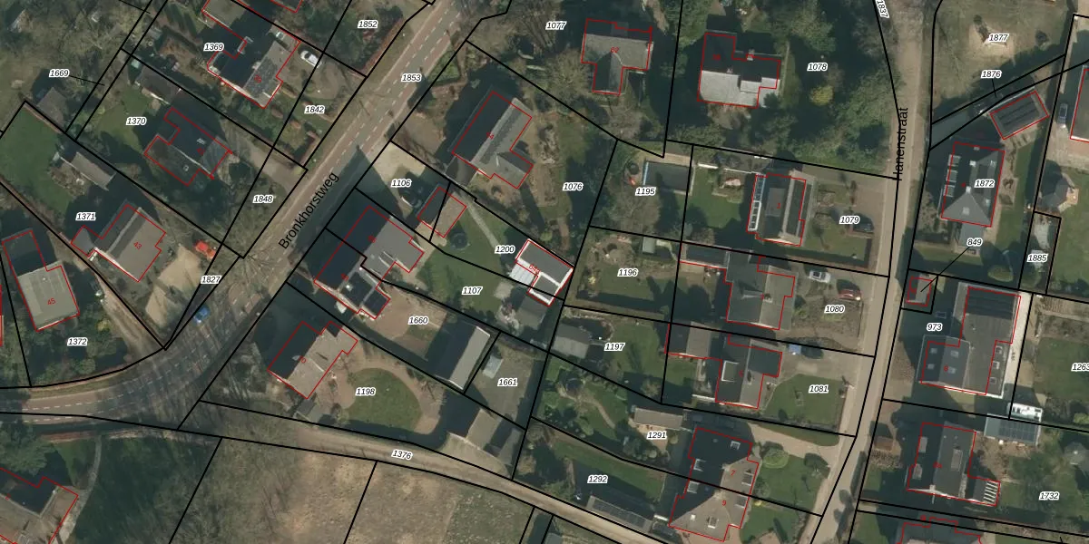 Gebruik de zoekbalk of klik op een perceel voor informatie over de adressen binnen dit perceel.