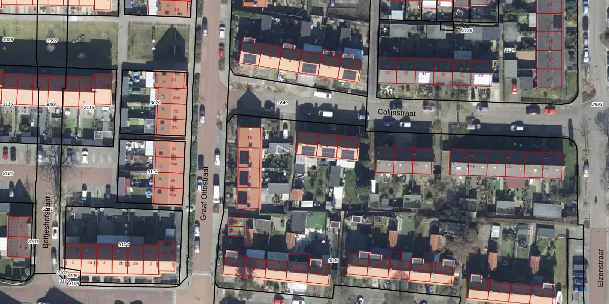 Het perceel waarop Colijnstraat 2 staat heeft een oppervlakte van 6480 m². Dit is een zeer groot perceel. De perceeloppervlakte wordt geregistreerd door het Kadaster. Gedetailleerde informatie over de maten van dit perceel kunt u vinden in het rapport Kadastrale kaart met maatvoering van Colijnstraat 2.