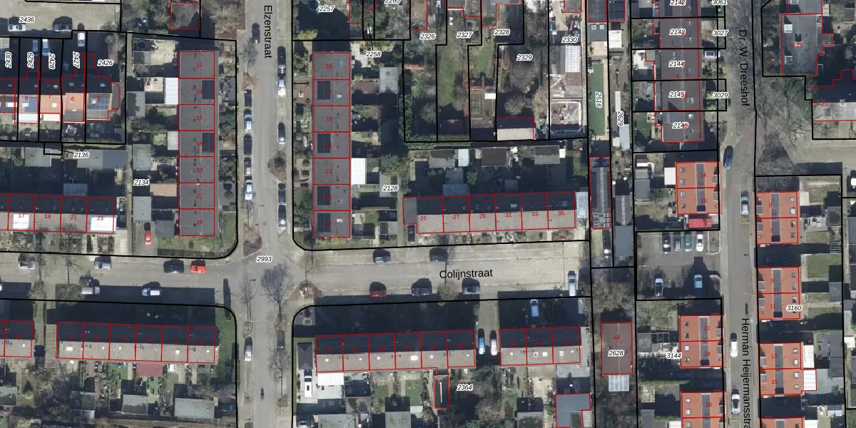 Het perceel waarop Colijnstraat 25 staat heeft een oppervlakte van 2305 m². Dit is een zeer groot perceel. De perceeloppervlakte wordt geregistreerd door het Kadaster. Gedetailleerde informatie over de maten van dit perceel kunt u vinden in het rapport Kadastrale kaart met maatvoering van Colijnstraat 25.