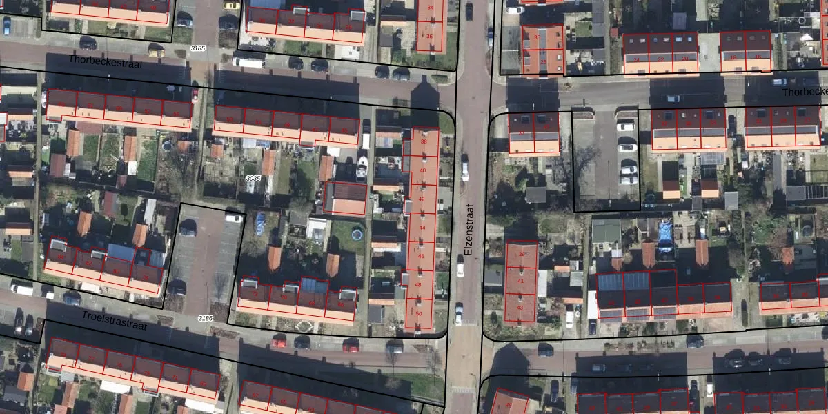 Het perceel waarop Elzenstraat 42 staat heeft een oppervlakte van 6125 m². Dit is een zeer groot perceel. De perceeloppervlakte wordt geregistreerd door het Kadaster. Gedetailleerde informatie over de maten van dit perceel kunt u vinden in het rapport Kadastrale kaart met maatvoering van Elzenstraat 42.