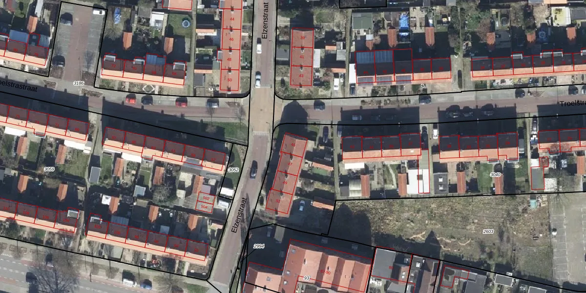 Elzenstraat 45 is gelegen op kadastraal perceel VEL01G3040. Deze kadastrale aanduiding is uniek en wordt gebruikt door het Kadaster om eigendomsrechten en andere zakelijke rechten vast te leggen. Het perceel maakt onderdeel uit van de kadastrale gemeente Velp Gelderland.