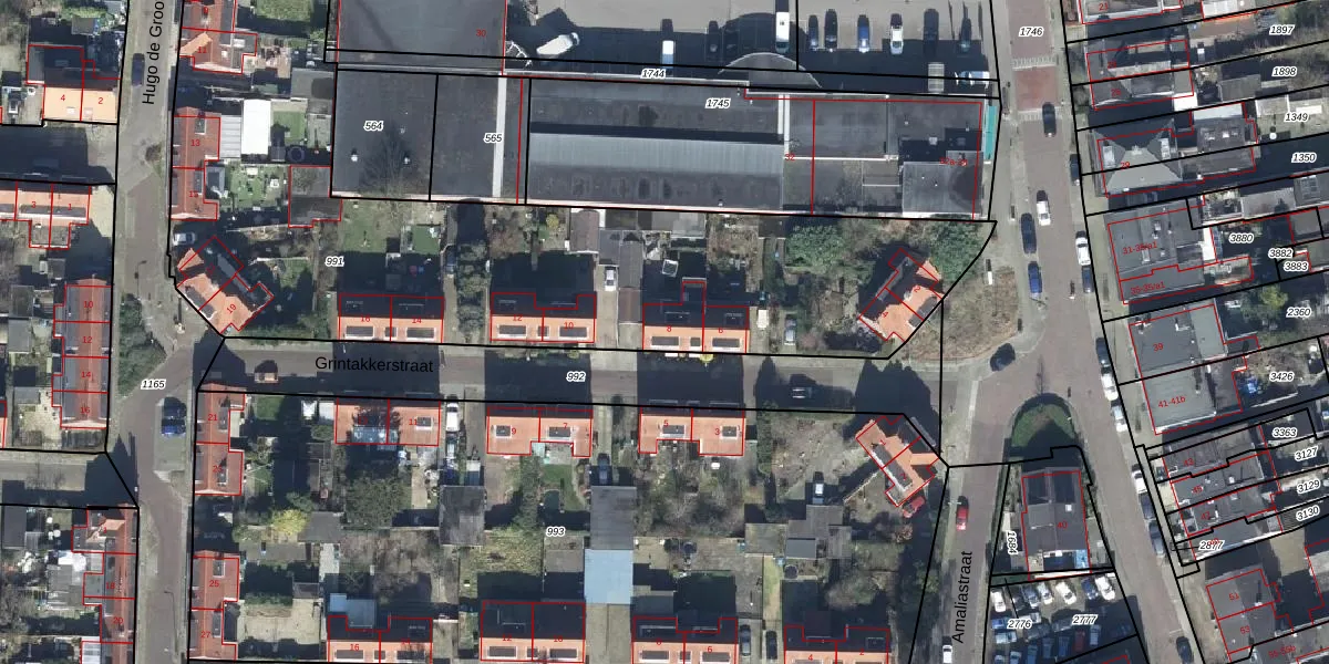 Grintakkerstraat 8 is gelegen op kadastraal perceel VEL01G991. Deze kadastrale aanduiding is uniek en wordt gebruikt door het Kadaster om eigendomsrechten en andere zakelijke rechten vast te leggen. Het perceel maakt onderdeel uit van de kadastrale gemeente Velp Gelderland.