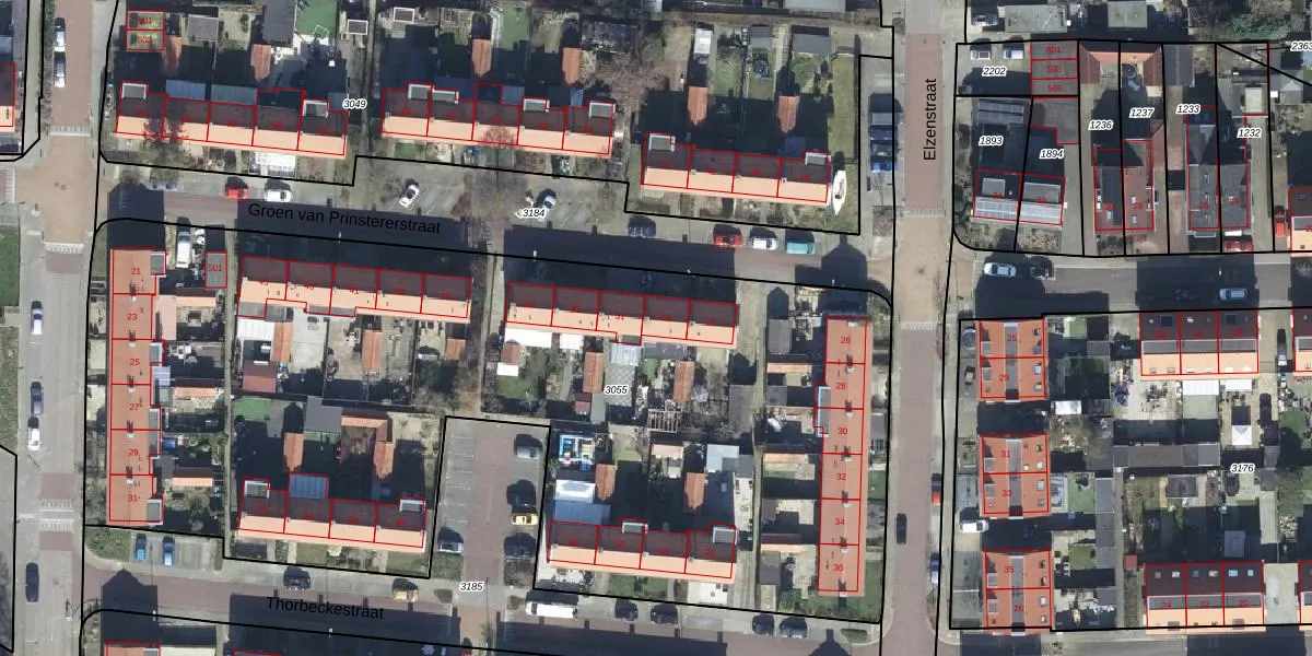 Groen van Prinstererstraat 29 is gelegen op kadastraal perceel VEL01G3055. Deze kadastrale aanduiding is uniek en wordt gebruikt door het Kadaster om eigendomsrechten en andere zakelijke rechten vast te leggen. Het perceel maakt onderdeel uit van de kadastrale gemeente Velp Gelderland.