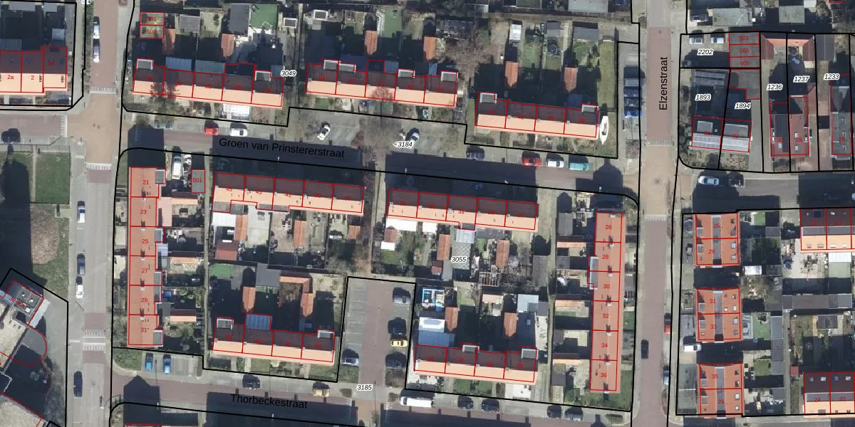 Groen van Prinstererstraat 33 is gelegen op kadastraal perceel VEL01G3055. Deze kadastrale aanduiding is uniek en wordt gebruikt door het Kadaster om eigendomsrechten en andere zakelijke rechten vast te leggen. Het perceel maakt onderdeel uit van de kadastrale gemeente Velp Gelderland.
