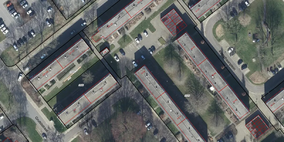 Het perceel waarop Gruttoplein 15 staat heeft een oppervlakte van 1,0 ha. Dit is een zeer groot perceel. De perceeloppervlakte wordt geregistreerd door het Kadaster. Gedetailleerde informatie over de maten van dit perceel kunt u vinden in het rapport Kadastrale kaart met maatvoering van Gruttoplein 15.
