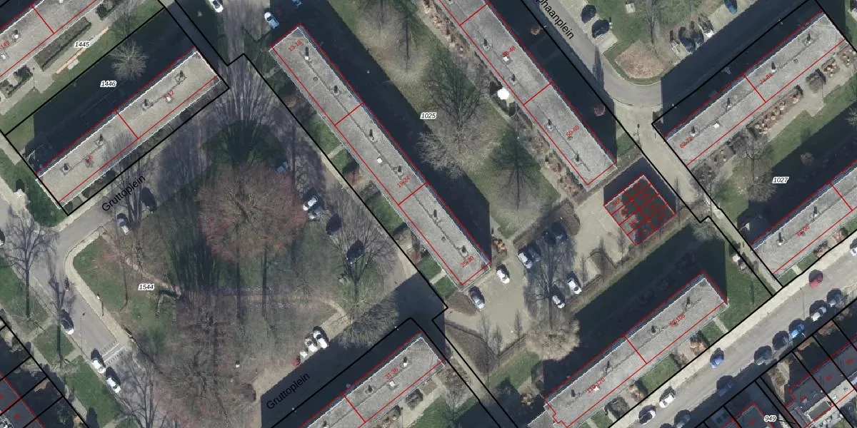 Het perceel waarop Gruttoplein 27 staat heeft een oppervlakte van 1,0 ha. Dit is een zeer groot perceel. De perceeloppervlakte wordt geregistreerd door het Kadaster. Gedetailleerde informatie over de maten van dit perceel kunt u vinden in het rapport Kadastrale kaart met maatvoering van Gruttoplein 27.