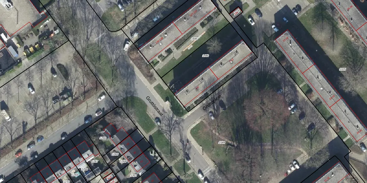 Het perceel waarop Gruttoplein 3 staat heeft een oppervlakte van 1147 m². Dit is een zeer groot perceel. De perceeloppervlakte wordt geregistreerd door het Kadaster. Gedetailleerde informatie over de maten van dit perceel kunt u vinden in het rapport Kadastrale kaart met maatvoering van Gruttoplein 3.
