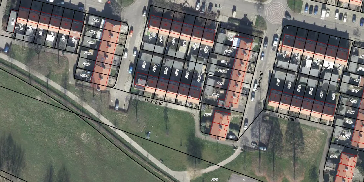 Het perceel waarop Hazepad 8 staat heeft een oppervlakte van 148 m². Dit is een middelgroot perceel. De perceeloppervlakte wordt geregistreerd door het Kadaster. Gedetailleerde informatie over de maten van dit perceel kunt u vinden in het rapport Kadastrale kaart met maatvoering van Hazepad 8.