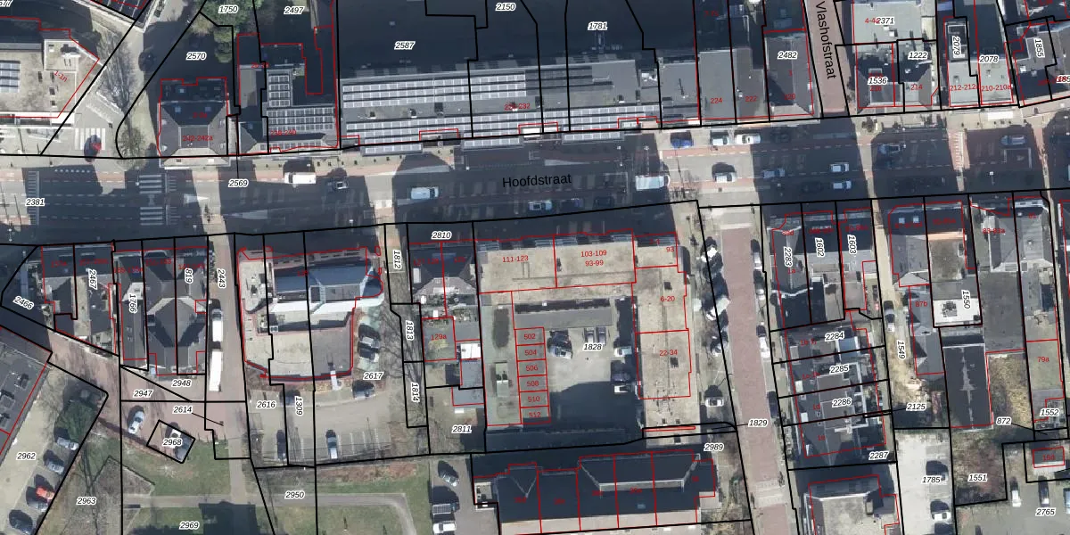 Het perceel waarop Hoofdstraat 115 staat heeft een oppervlakte van 1886 m². Dit is een zeer groot perceel. De perceeloppervlakte wordt geregistreerd door het Kadaster. Gedetailleerde informatie over de maten van dit perceel kunt u vinden in het rapport Kadastrale kaart met maatvoering van Hoofdstraat 115.