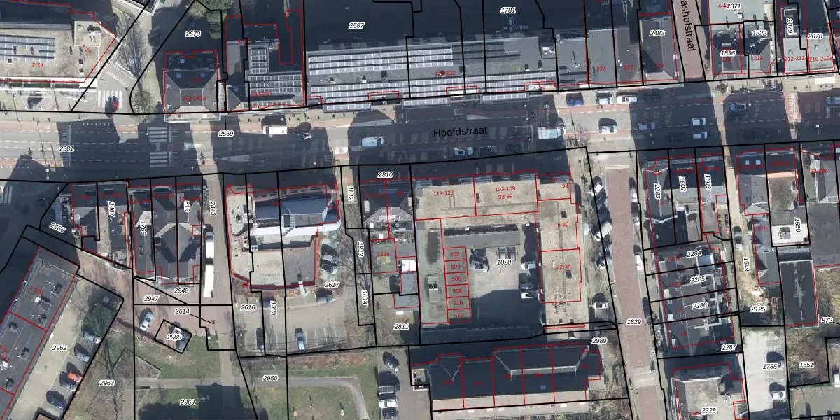 Het perceel waarop Hoofdstraat 119 staat heeft een oppervlakte van 1886 m². Dit is een zeer groot perceel. De perceeloppervlakte wordt geregistreerd door het Kadaster. Gedetailleerde informatie over de maten van dit perceel kunt u vinden in het rapport Kadastrale kaart met maatvoering van Hoofdstraat 119.