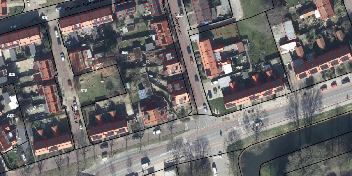 Het perceel waarop IJsselstraat 116 staat heeft een oppervlakte van 3935 m². Dit is een zeer groot perceel. De perceeloppervlakte wordt geregistreerd door het Kadaster. Gedetailleerde informatie over de maten van dit perceel kunt u vinden in het rapport Kadastrale kaart met maatvoering van IJsselstraat 116.