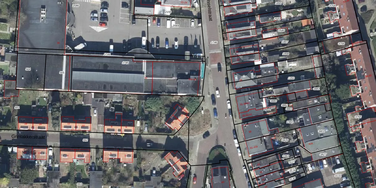 Het perceel waarop IJsselstraat 38 staat heeft een oppervlakte van 1340 m². Dit is een zeer groot perceel. De perceeloppervlakte wordt geregistreerd door het Kadaster. Gedetailleerde informatie over de maten van dit perceel kunt u vinden in het rapport Kadastrale kaart met maatvoering van IJsselstraat 38.