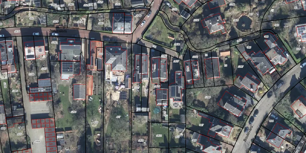 Het perceel waarop Jeruzalem 17 staat heeft een oppervlakte van 426 m². Dit is een groot perceel. De perceeloppervlakte wordt geregistreerd door het Kadaster. Gedetailleerde informatie over de maten van dit perceel kunt u vinden in het rapport Kadastrale kaart met maatvoering van Jeruzalem 17.