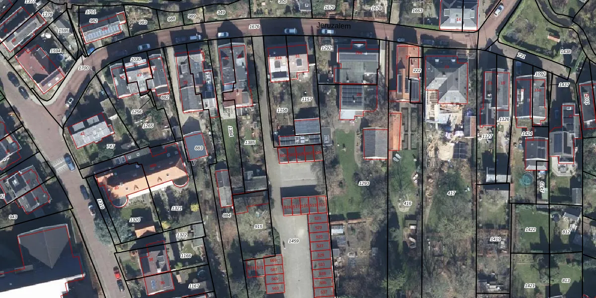 Het perceel waarop Jeruzalem 505 staat heeft een oppervlakte van 1667 m². Dit is een zeer groot perceel. De perceeloppervlakte wordt geregistreerd door het Kadaster. Gedetailleerde informatie over de maten van dit perceel kunt u vinden in het rapport Kadastrale kaart met maatvoering van Jeruzalem 505.