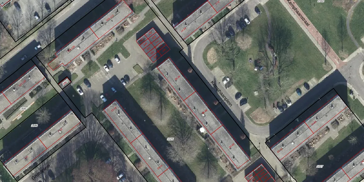 Het perceel waarop Kemphaanplein 32 staat heeft een oppervlakte van 1,0 ha. Dit is een zeer groot perceel. De perceeloppervlakte wordt geregistreerd door het Kadaster. Gedetailleerde informatie over de maten van dit perceel kunt u vinden in het rapport Kadastrale kaart met maatvoering van Kemphaanplein 32.