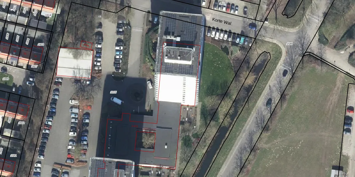 Het perceel waarop Korte Wal 5 staat heeft een oppervlakte van 1,2 ha. Dit is een zeer groot perceel. De perceeloppervlakte wordt geregistreerd door het Kadaster. Gedetailleerde informatie over de maten van dit perceel kunt u vinden in het rapport Kadastrale kaart met maatvoering van Korte Wal 5.