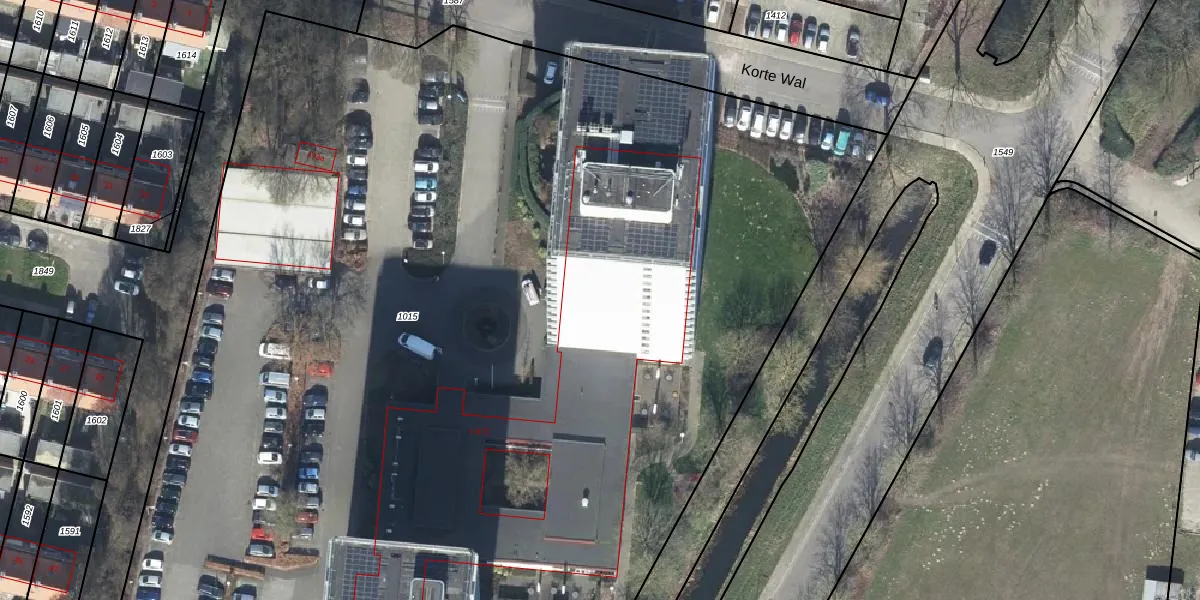 Het perceel waarop Korte Wal 77 staat heeft een oppervlakte van 1,2 ha. Dit is een zeer groot perceel. De perceeloppervlakte wordt geregistreerd door het Kadaster. Gedetailleerde informatie over de maten van dit perceel kunt u vinden in het rapport Kadastrale kaart met maatvoering van Korte Wal 77.