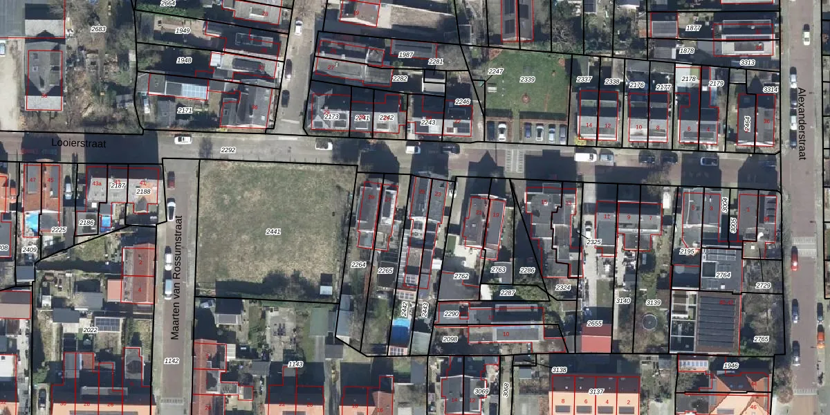 Het perceel waarop Looierstraat 25 staat heeft een oppervlakte van 229 m². Dit is een middelgroot perceel. De perceeloppervlakte wordt geregistreerd door het Kadaster. Gedetailleerde informatie over de maten van dit perceel kunt u vinden in het rapport Kadastrale kaart met maatvoering van Looierstraat 25.