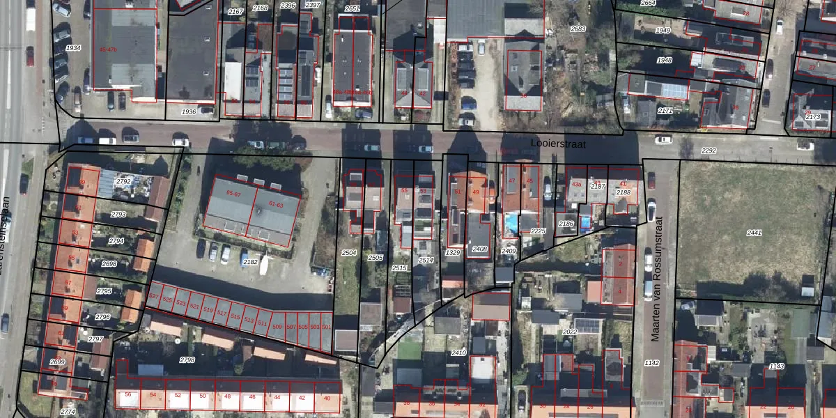 Looierstraat 53 is gelegen op kadastraal perceel VEL01G2514. Deze kadastrale aanduiding is uniek en wordt gebruikt door het Kadaster om eigendomsrechten en andere zakelijke rechten vast te leggen. Het perceel maakt onderdeel uit van de kadastrale gemeente Velp Gelderland.