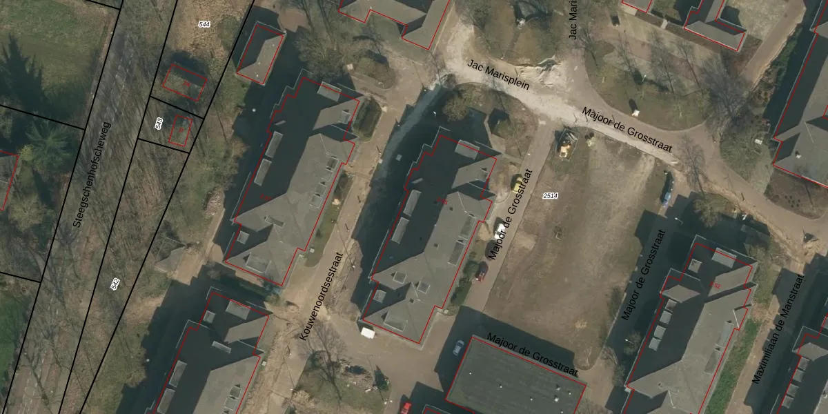 Het perceel waarop Majoor de Grosstraat 39 staat heeft een oppervlakte van 3,6 ha. Dit is een zeer groot perceel. De perceeloppervlakte wordt geregistreerd door het Kadaster. Gedetailleerde informatie over de maten van dit perceel kunt u vinden in het rapport Kadastrale kaart met maatvoering van Majoor de Grosstraat 39.