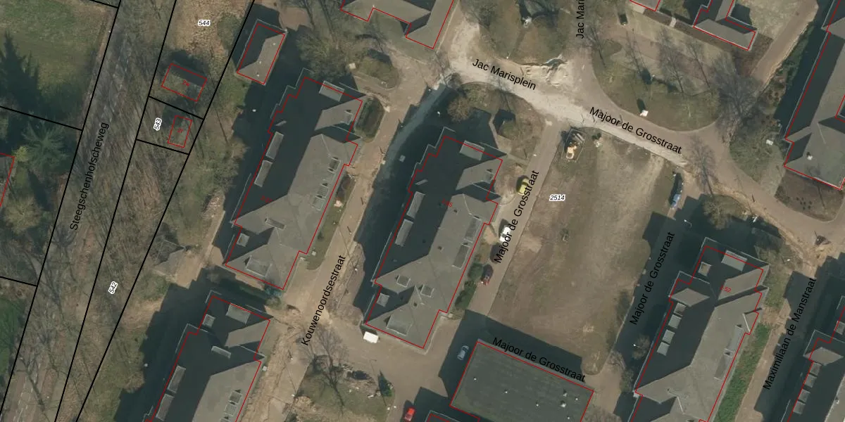 Het perceel waarop Majoor de Grosstraat 55 staat heeft een oppervlakte van 3,6 ha. Dit is een zeer groot perceel. De perceeloppervlakte wordt geregistreerd door het Kadaster. Gedetailleerde informatie over de maten van dit perceel kunt u vinden in het rapport Kadastrale kaart met maatvoering van Majoor de Grosstraat 55.