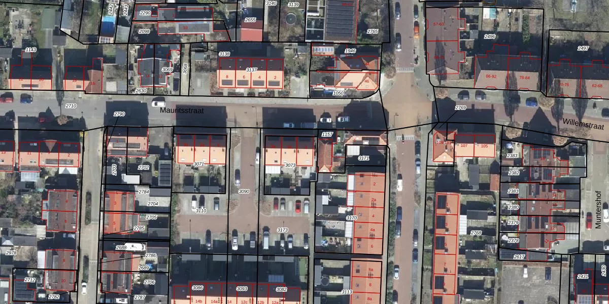 Het perceel waarop Mauritsstraat 3 staat heeft een oppervlakte van 328 m². Dit is een groot perceel. De perceeloppervlakte wordt geregistreerd door het Kadaster. Gedetailleerde informatie over de maten van dit perceel kunt u vinden in het rapport Kadastrale kaart met maatvoering van Mauritsstraat 3.