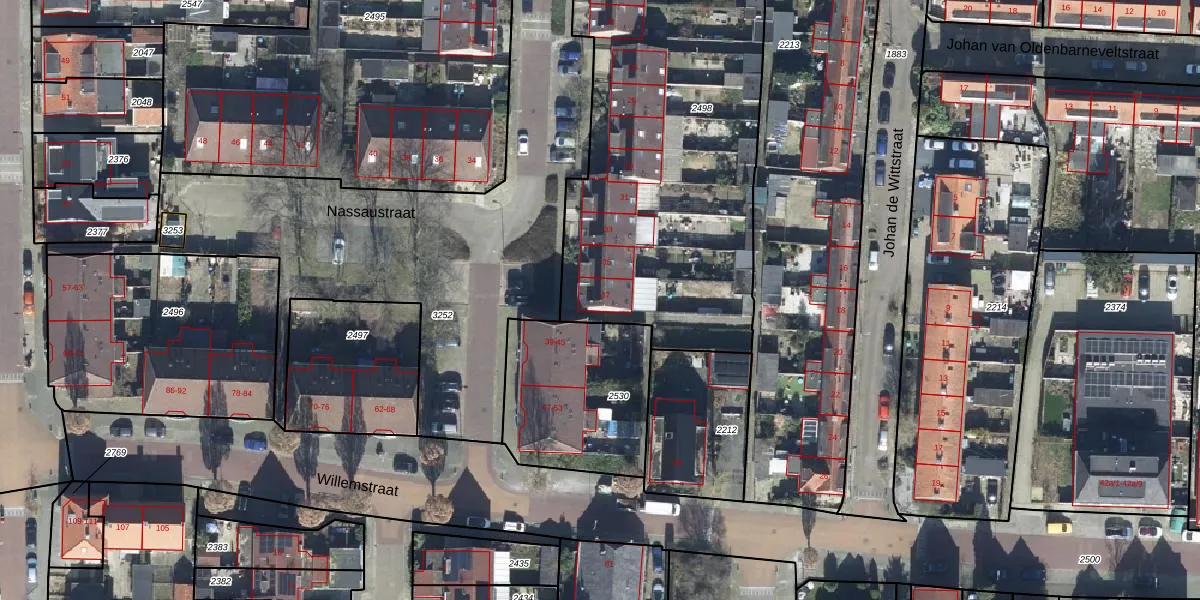 Het perceel waarop Nassaustraat 37 staat heeft een oppervlakte van 2385 m². Dit is een zeer groot perceel. De perceeloppervlakte wordt geregistreerd door het Kadaster. Gedetailleerde informatie over de maten van dit perceel kunt u vinden in het rapport Kadastrale kaart met maatvoering van Nassaustraat 37.