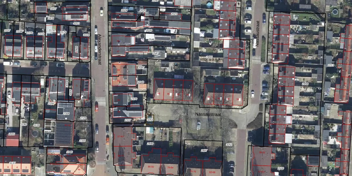 Het perceel waarop Nassaustraat 44 staat heeft een oppervlakte van 2655 m². Dit is een zeer groot perceel. De perceeloppervlakte wordt geregistreerd door het Kadaster. Gedetailleerde informatie over de maten van dit perceel kunt u vinden in het rapport Kadastrale kaart met maatvoering van Nassaustraat 44.
