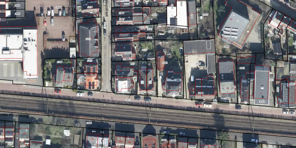 Het perceel waarop Noorder Parallelweg 15 staat heeft een oppervlakte van 156 m². Dit is een middelgroot perceel. De perceeloppervlakte wordt geregistreerd door het Kadaster. Gedetailleerde informatie over de maten van dit perceel kunt u vinden in het rapport Kadastrale kaart met maatvoering van Noorder Parallelweg 15.