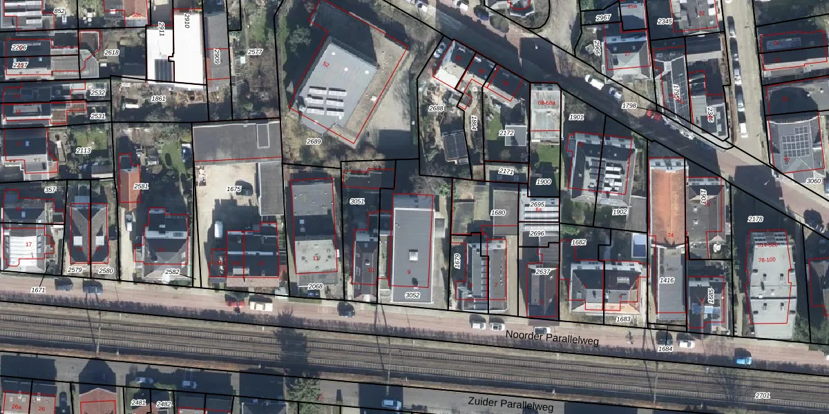 Noorder Parallelweg 9 is gelegen op kadastraal perceel VEL01F3052. Deze kadastrale aanduiding is uniek en wordt gebruikt door het Kadaster om eigendomsrechten en andere zakelijke rechten vast te leggen. Het perceel maakt onderdeel uit van de kadastrale gemeente Velp Gelderland.