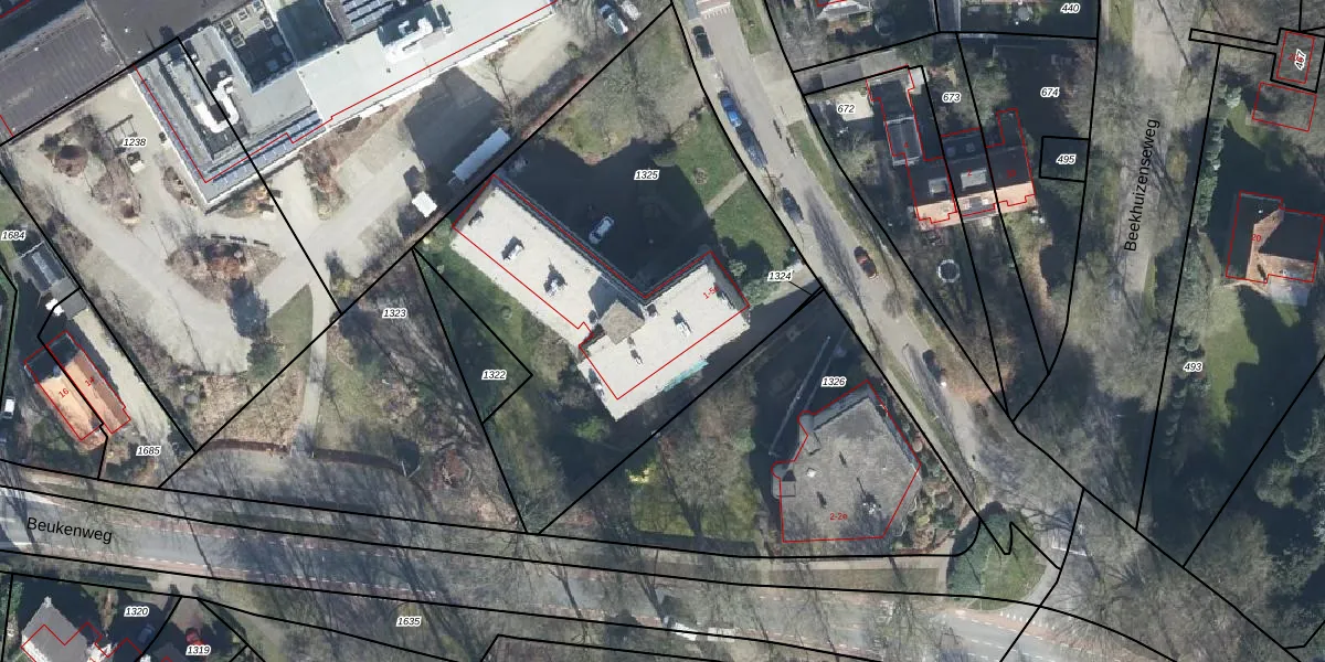 Het perceel waarop Pinkenbergseweg 1-a staat heeft een oppervlakte van 2389 m². Dit is een zeer groot perceel. De perceeloppervlakte wordt geregistreerd door het Kadaster. Gedetailleerde informatie over de maten van dit perceel kunt u vinden in het rapport Kadastrale kaart met maatvoering van Pinkenbergseweg 1-a.