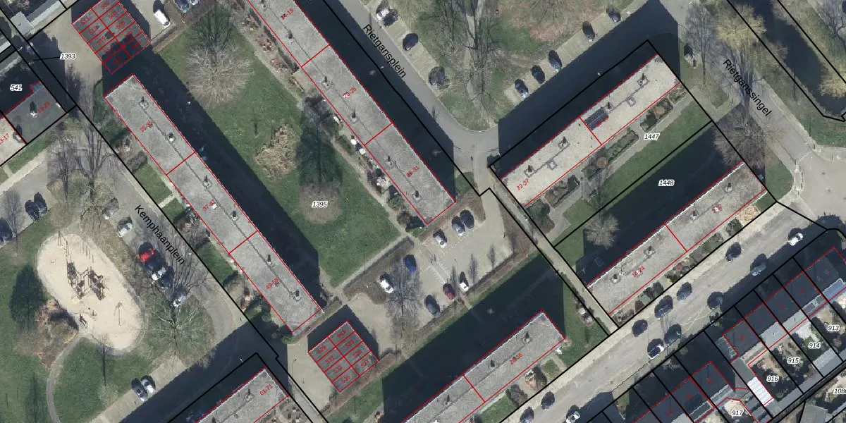 Het perceel waarop Rietgansplein 31 staat heeft een oppervlakte van 8678 m². Dit is een zeer groot perceel. De perceeloppervlakte wordt geregistreerd door het Kadaster. Gedetailleerde informatie over de maten van dit perceel kunt u vinden in het rapport Kadastrale kaart met maatvoering van Rietgansplein 31.