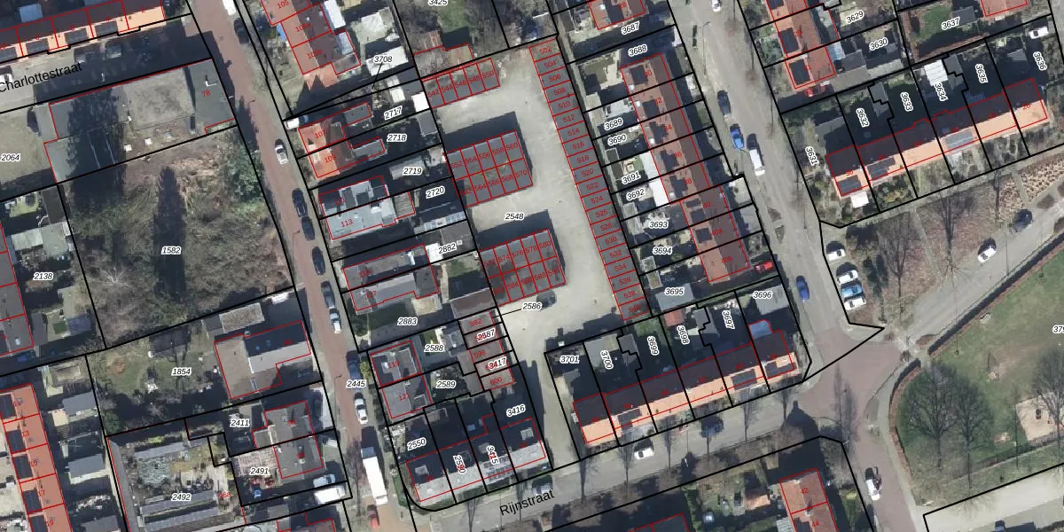 Het perceel waarop Rijnstraat 588 staat heeft een oppervlakte van 1628 m². Dit is een zeer groot perceel. De perceeloppervlakte wordt geregistreerd door het Kadaster. Gedetailleerde informatie over de maten van dit perceel kunt u vinden in het rapport Kadastrale kaart met maatvoering van Rijnstraat 588.