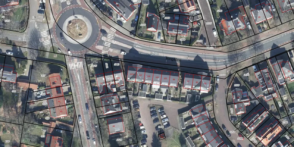 Ringallee 105 is gelegen op kadastraal perceel VEL01F2991. Deze kadastrale aanduiding is uniek en wordt gebruikt door het Kadaster om eigendomsrechten en andere zakelijke rechten vast te leggen. Het perceel maakt onderdeel uit van de kadastrale gemeente Velp Gelderland.