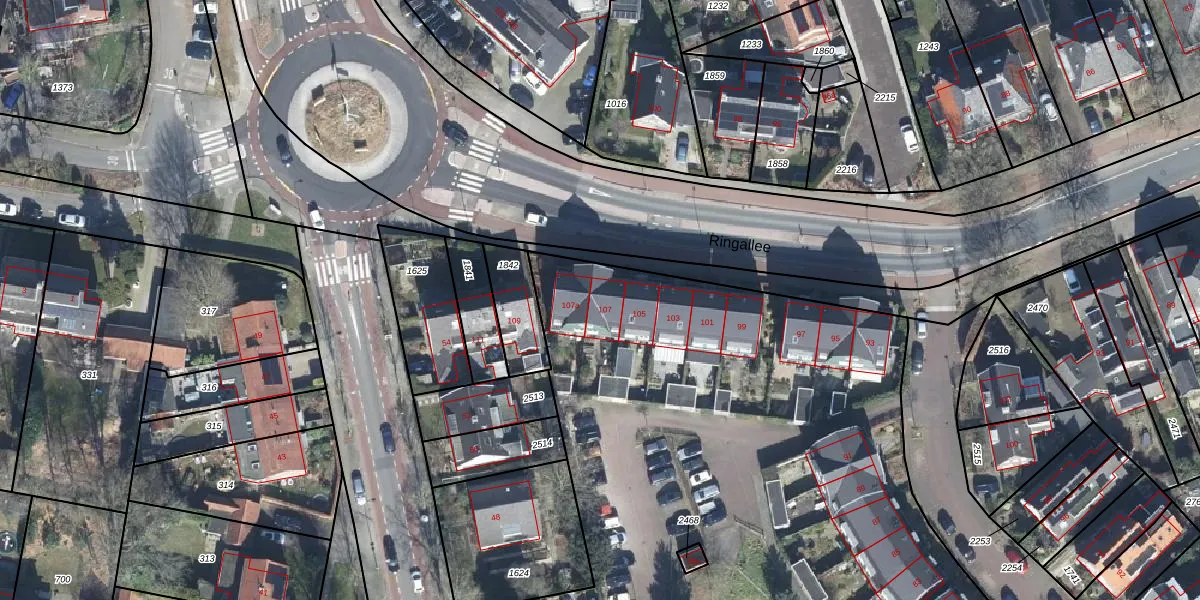 Ringallee 107 is gelegen op kadastraal perceel VEL01F2991. Deze kadastrale aanduiding is uniek en wordt gebruikt door het Kadaster om eigendomsrechten en andere zakelijke rechten vast te leggen. Het perceel maakt onderdeel uit van de kadastrale gemeente Velp Gelderland.