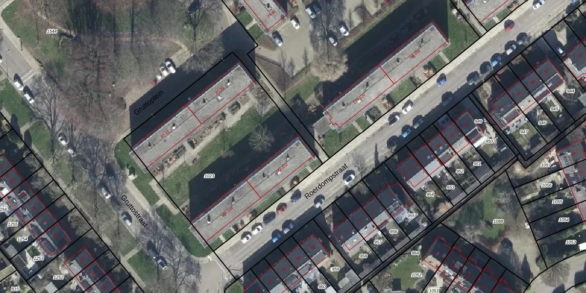 Het perceel waarop Roerdompstraat 126 staat heeft een oppervlakte van 2349 m². Dit is een zeer groot perceel. De perceeloppervlakte wordt geregistreerd door het Kadaster. Gedetailleerde informatie over de maten van dit perceel kunt u vinden in het rapport Kadastrale kaart met maatvoering van Roerdompstraat 126.