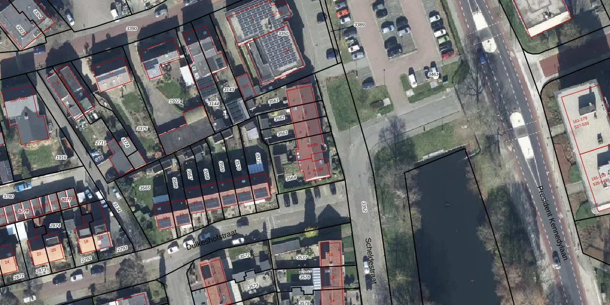 Het perceel waarop Scheldestraat 8-a staat heeft een oppervlakte van 355 m². Dit is een groot perceel. De perceeloppervlakte wordt geregistreerd door het Kadaster. Gedetailleerde informatie over de maten van dit perceel kunt u vinden in het rapport Kadastrale kaart met maatvoering van Scheldestraat 8-a.
