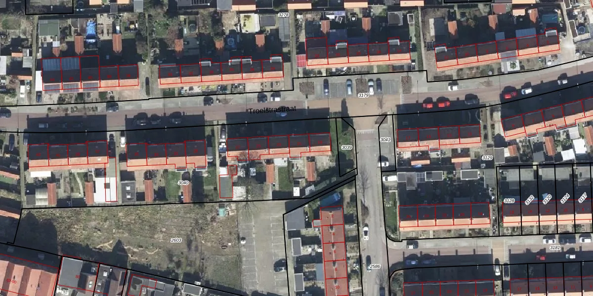 Troelstrastraat 21 is gelegen op kadastraal perceel VEL01G3040. Deze kadastrale aanduiding is uniek en wordt gebruikt door het Kadaster om eigendomsrechten en andere zakelijke rechten vast te leggen. Het perceel maakt onderdeel uit van de kadastrale gemeente Velp Gelderland.