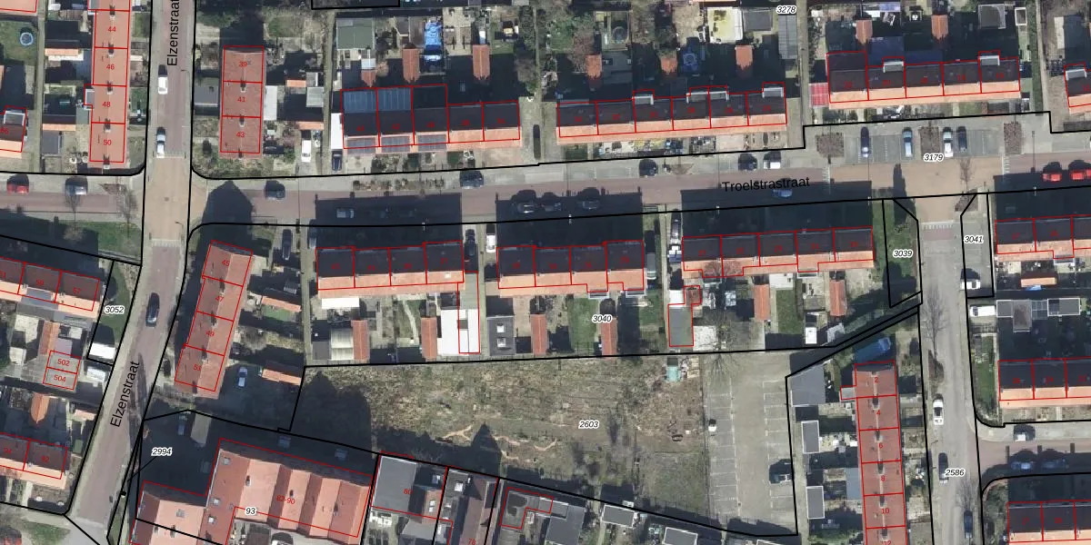 Troelstrastraat 33 is gelegen op kadastraal perceel VEL01G3040. Deze kadastrale aanduiding is uniek en wordt gebruikt door het Kadaster om eigendomsrechten en andere zakelijke rechten vast te leggen. Het perceel maakt onderdeel uit van de kadastrale gemeente Velp Gelderland.