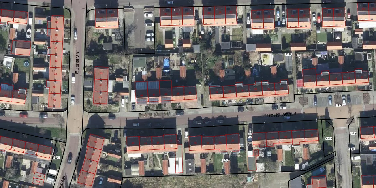 Troelstrastraat 36 is gelegen op kadastraal perceel VEL01G3278. Deze kadastrale aanduiding is uniek en wordt gebruikt door het Kadaster om eigendomsrechten en andere zakelijke rechten vast te leggen. Het perceel maakt onderdeel uit van de kadastrale gemeente Velp Gelderland.