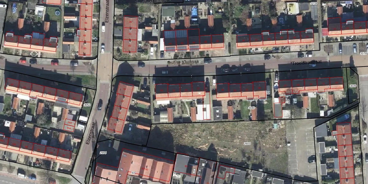 Troelstrastraat 39 is gelegen op kadastraal perceel VEL01G3040. Deze kadastrale aanduiding is uniek en wordt gebruikt door het Kadaster om eigendomsrechten en andere zakelijke rechten vast te leggen. Het perceel maakt onderdeel uit van de kadastrale gemeente Velp Gelderland.