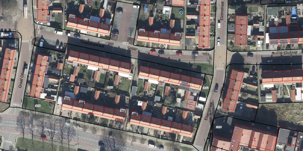 Troelstrastraat 65 is gelegen op kadastraal perceel VEL01G3059. Deze kadastrale aanduiding is uniek en wordt gebruikt door het Kadaster om eigendomsrechten en andere zakelijke rechten vast te leggen. Het perceel maakt onderdeel uit van de kadastrale gemeente Velp Gelderland.