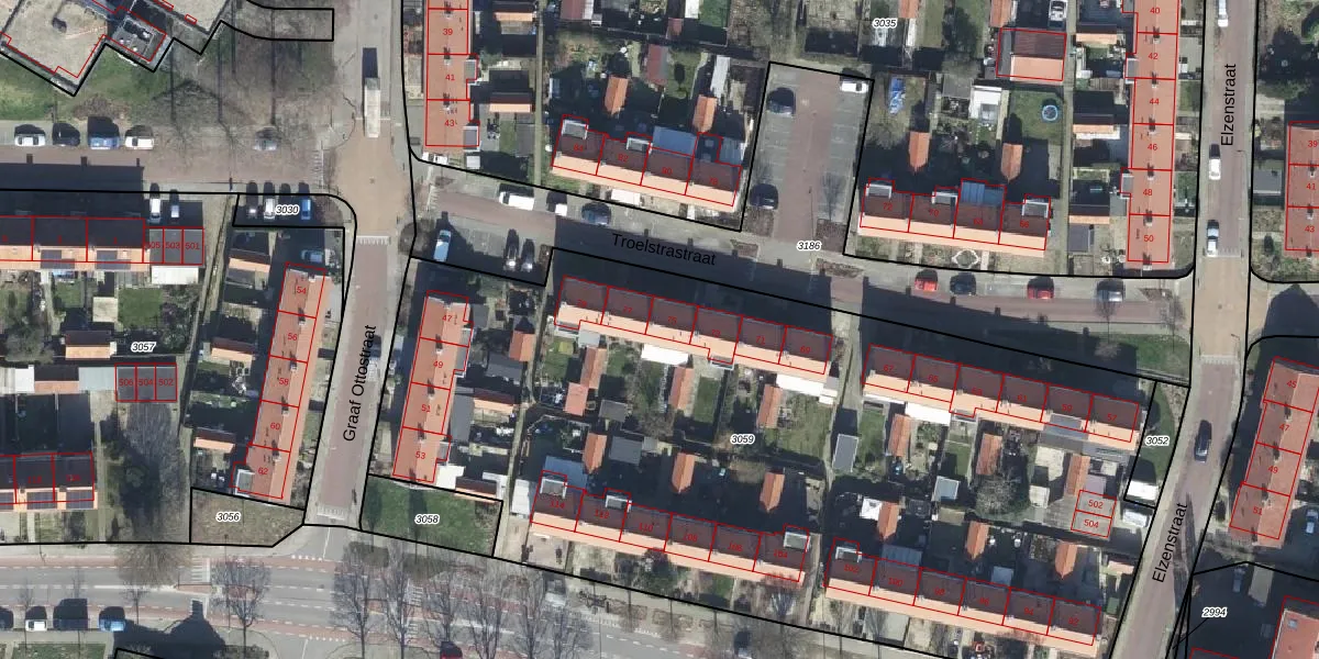 Troelstrastraat 75 is gelegen op kadastraal perceel VEL01G3059. Deze kadastrale aanduiding is uniek en wordt gebruikt door het Kadaster om eigendomsrechten en andere zakelijke rechten vast te leggen. Het perceel maakt onderdeel uit van de kadastrale gemeente Velp Gelderland.